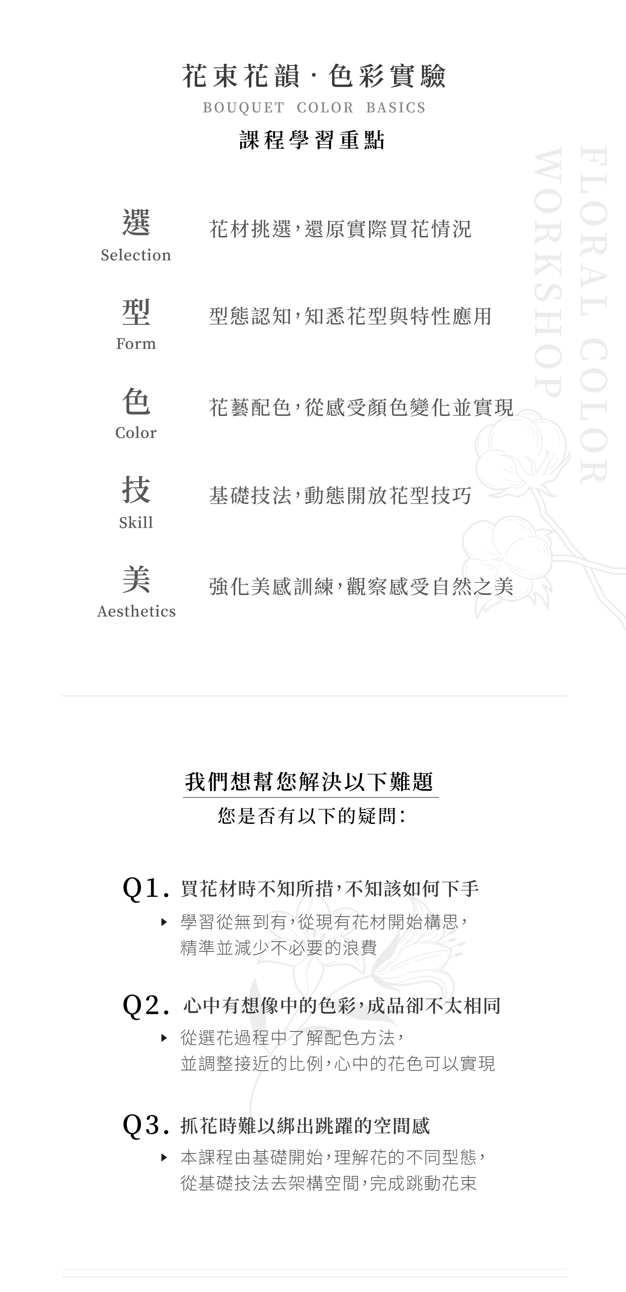 • 上課日 D - 3-5,因為花材已經下訂可退款70%