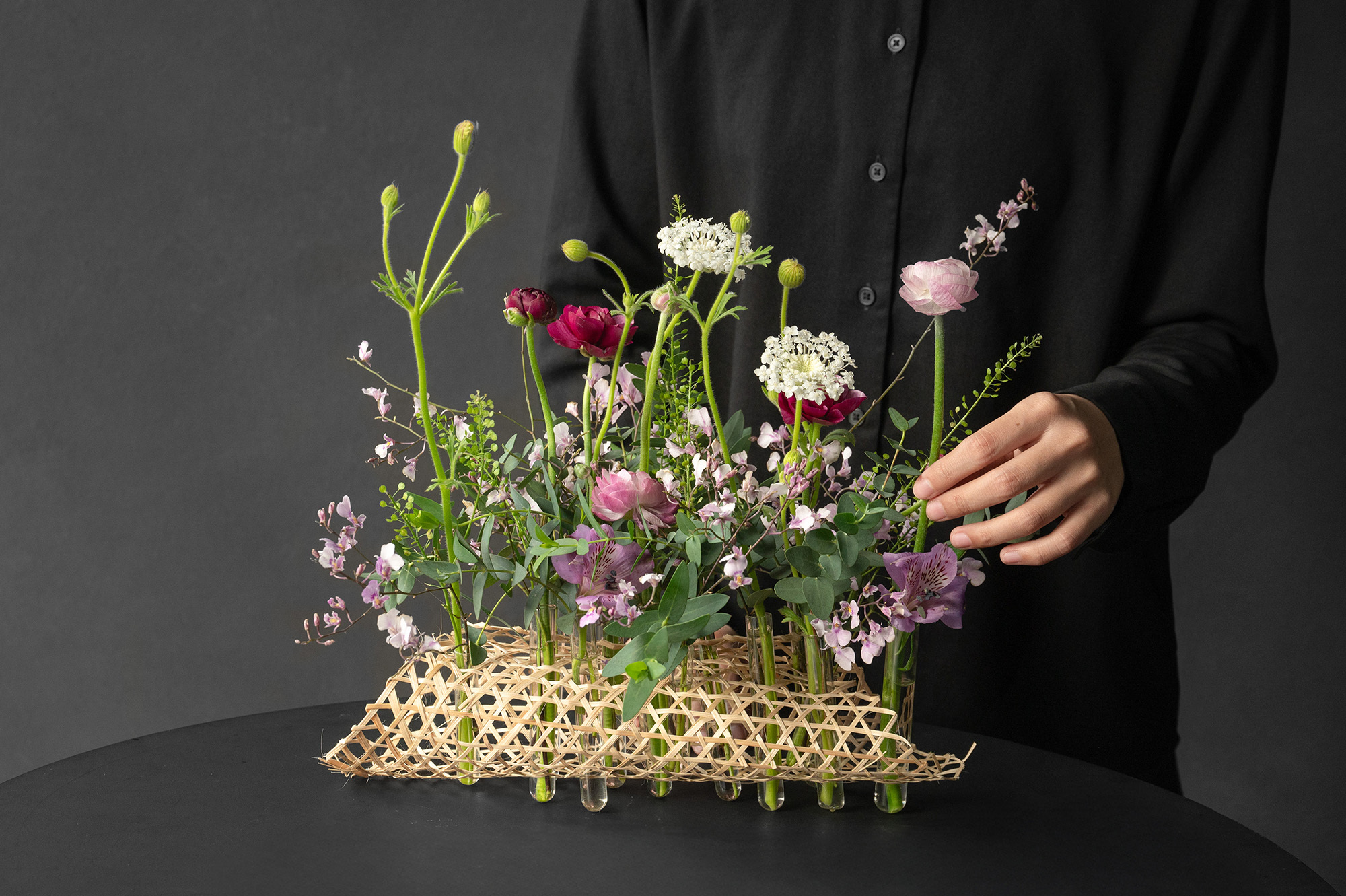 用竹編結構 × 線條花材,