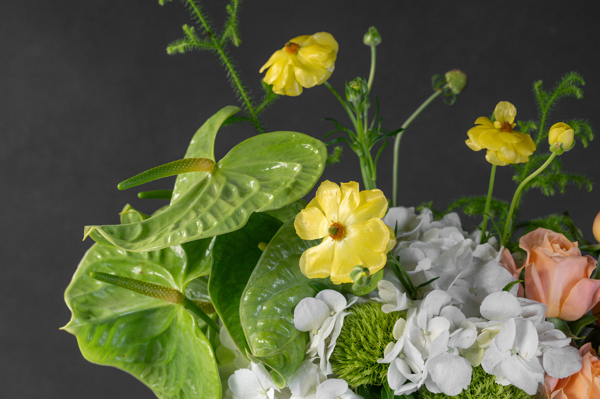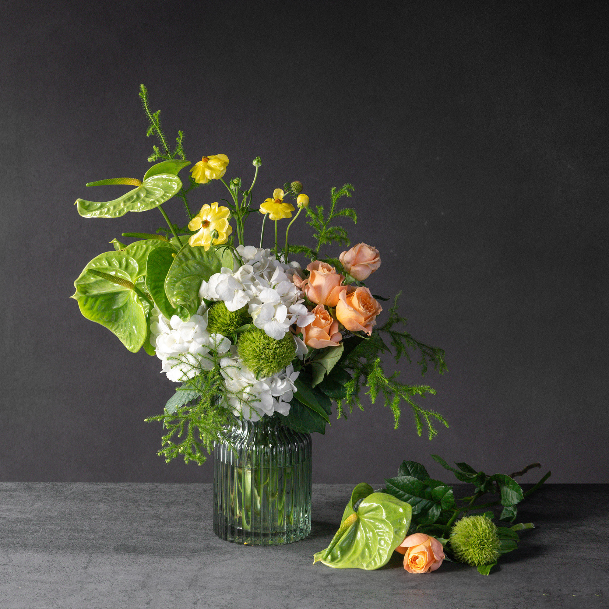 從花藝作品裡感受夏日綠意盎然的清爽感。