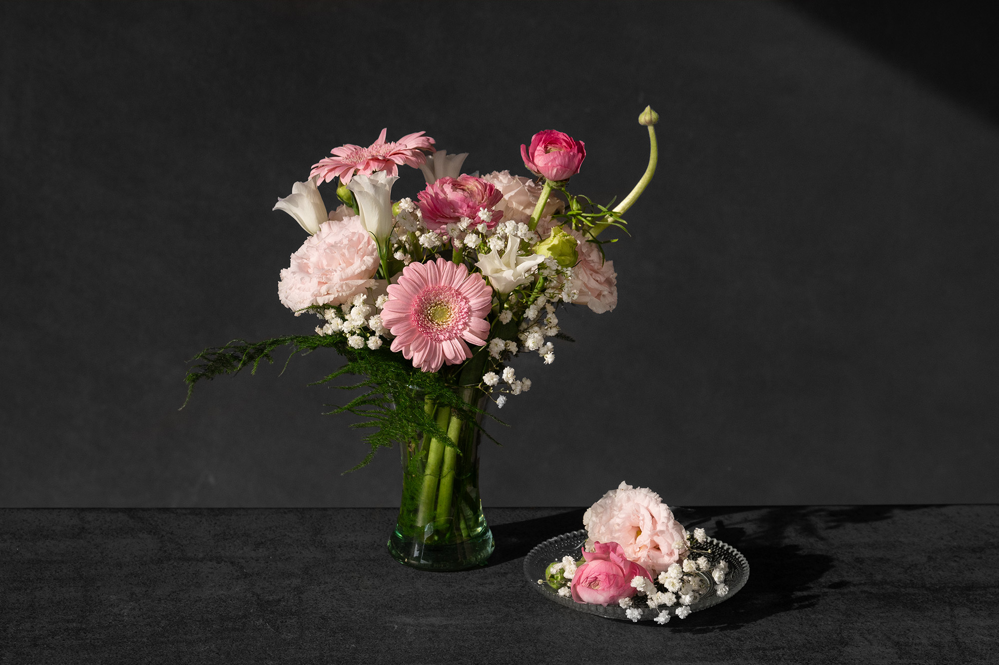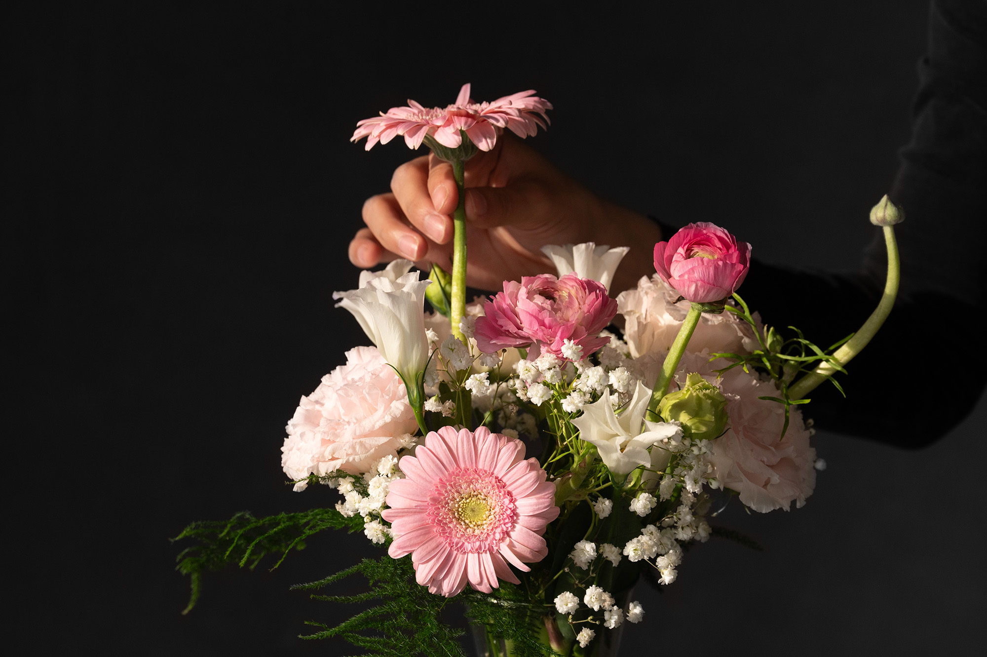 利用文竹架構穩固花材,