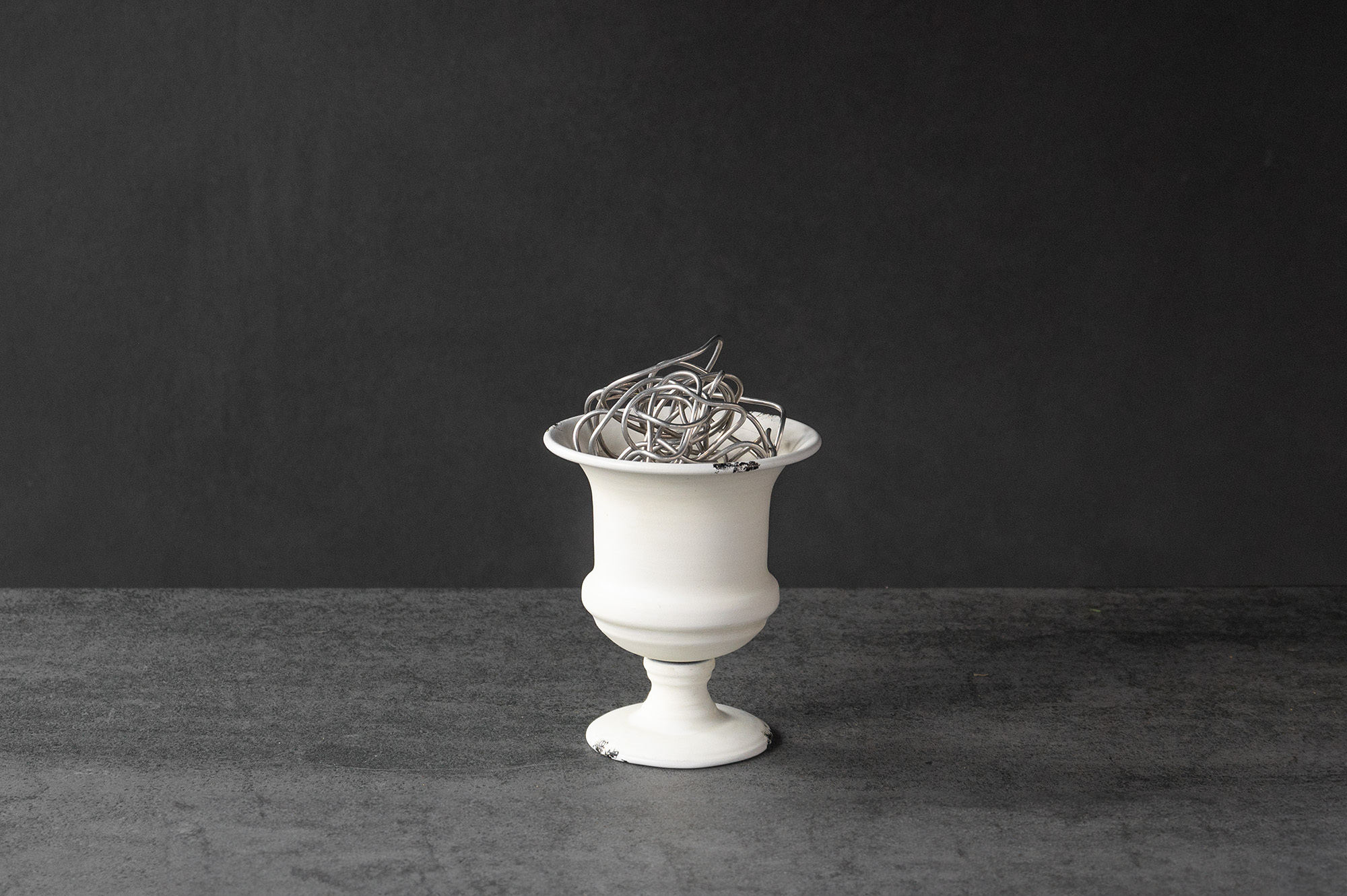 好塑型的鋁線架構,凹折成圓球體置入花器中,