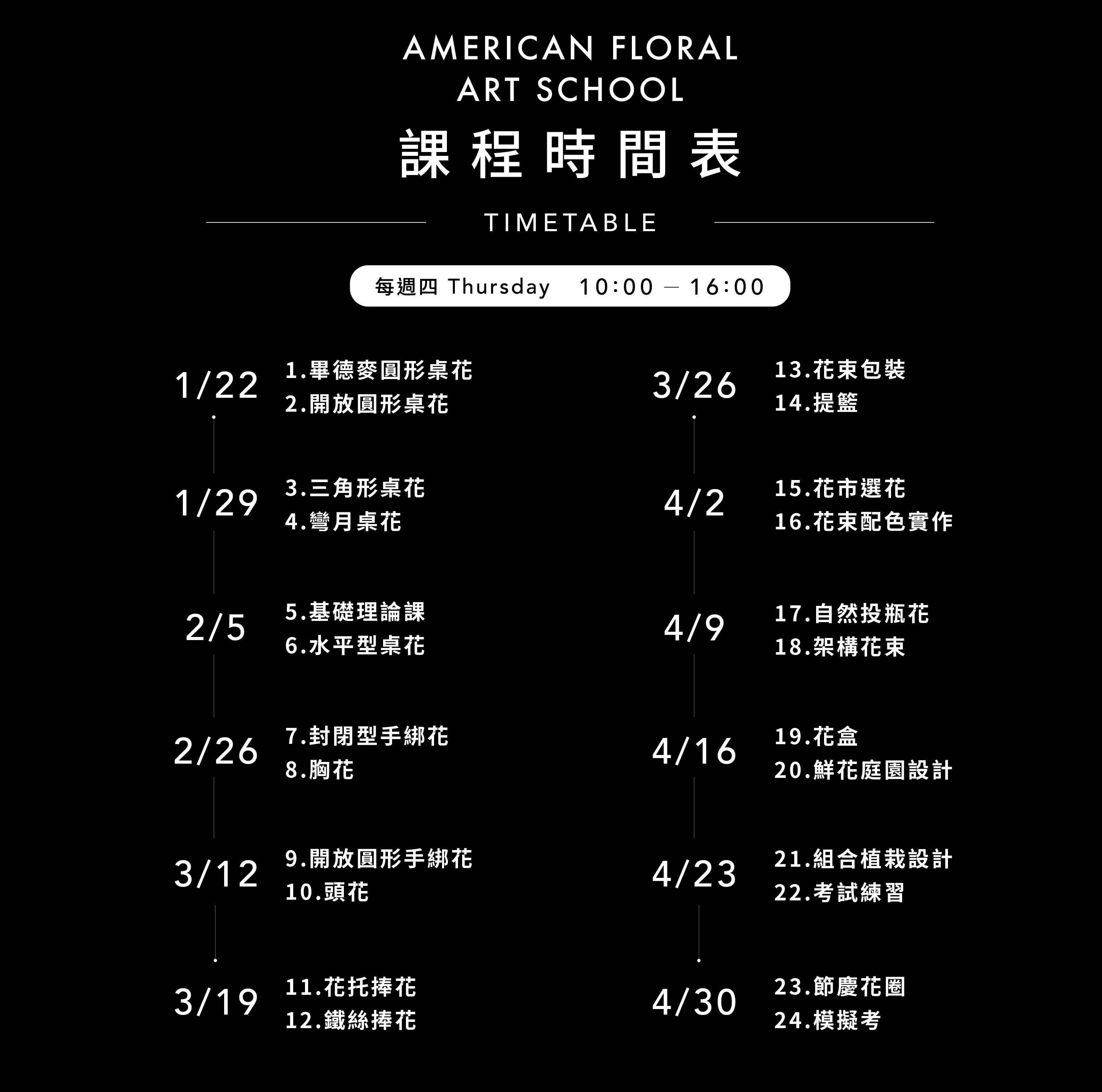 因需提前準備花材,請於上課日的四天前完成請假手續。
