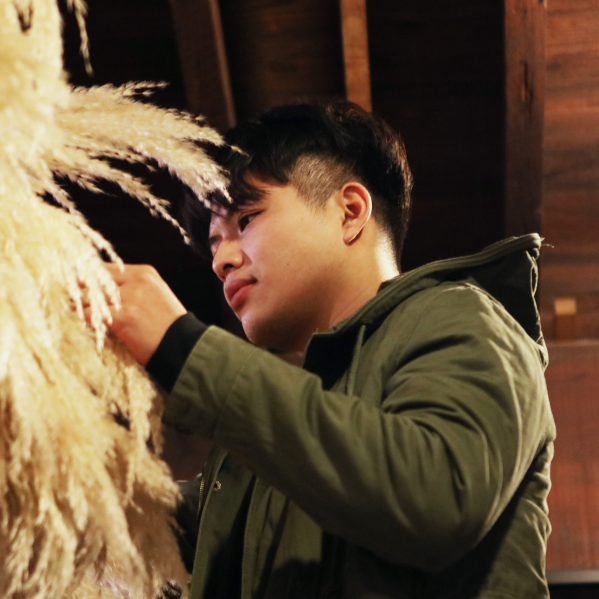 運用兩百隻大蘆葦打造霜霧雲朵,一同感受純粹的白色雪景。
