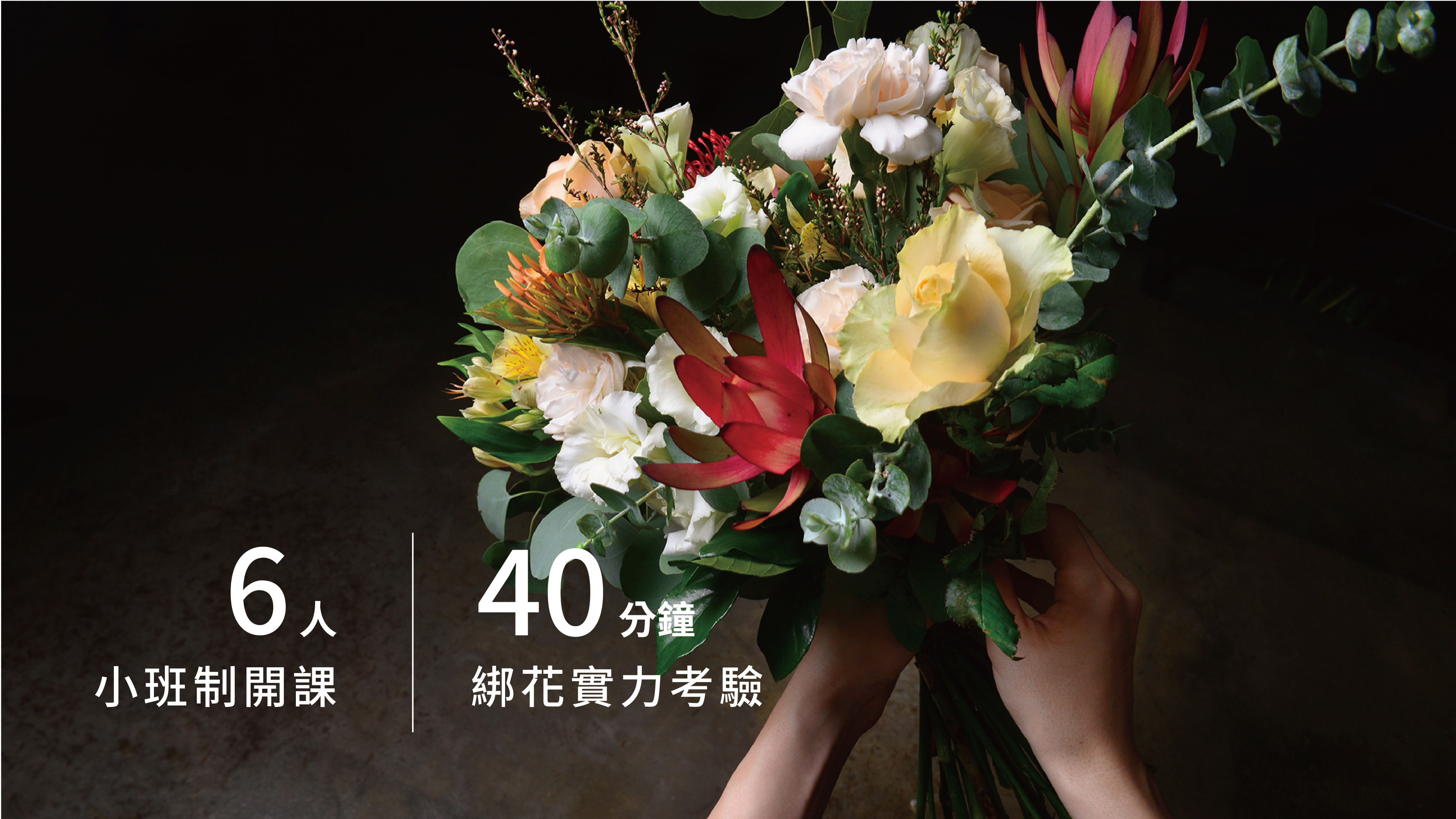 ⚬ 最後會安排一個考試,40分鐘內做出指定捧花,證明你的學習成果。